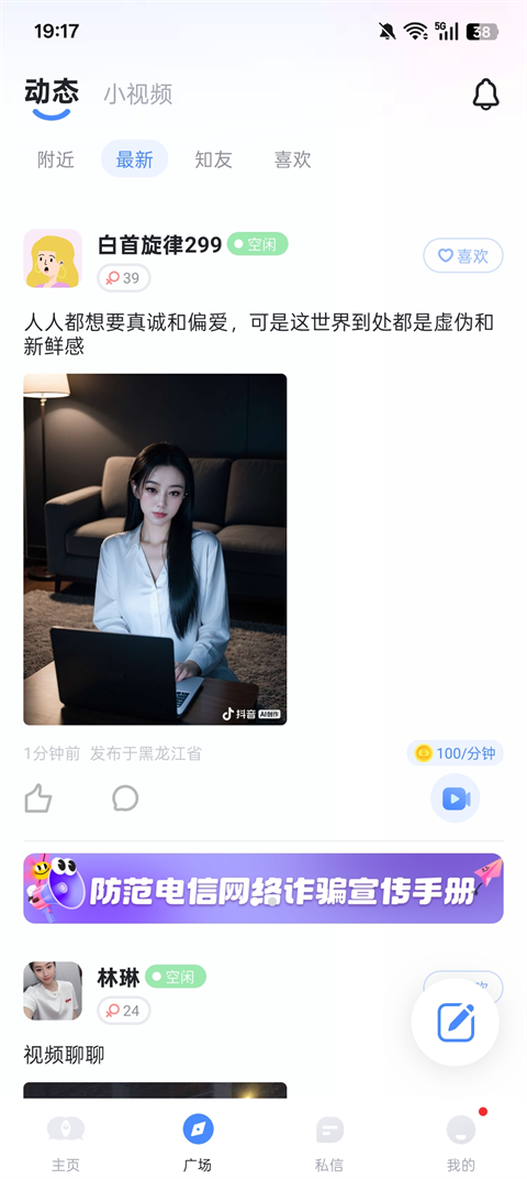 知聊App是一款为独居单身群体提供陪伴的社交平台,软件通过安全、快速、方便的在线匹配机制,为用户匹配附近可能喜欢的人,用户可以根据自己的偏好,选择视频通话或文字的互动方式建立联系,彼此陪伴!知聊App内的所有用户都已经过实名制认证,可以放心使用!寂寞无聊的时光不知道如何打发?那就快来下载知聊App,开启你的脱单之旅!