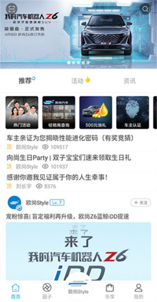 登录成功后,在首页底部导航栏点击「欧尚style」入口(部分版本可能直接显示为「OnStyle」相关入口)。