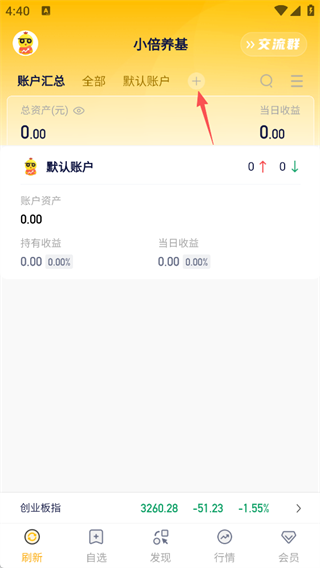 1、打开小倍养基App,点击默认账号→导入持仓实时看收益。