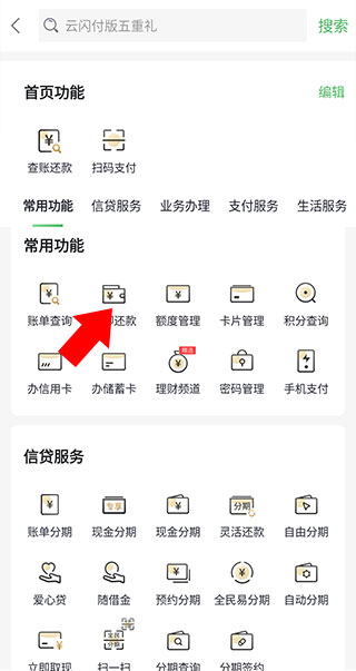 2、来到下方界面,在常用功能栏下点击“立即还款”图标