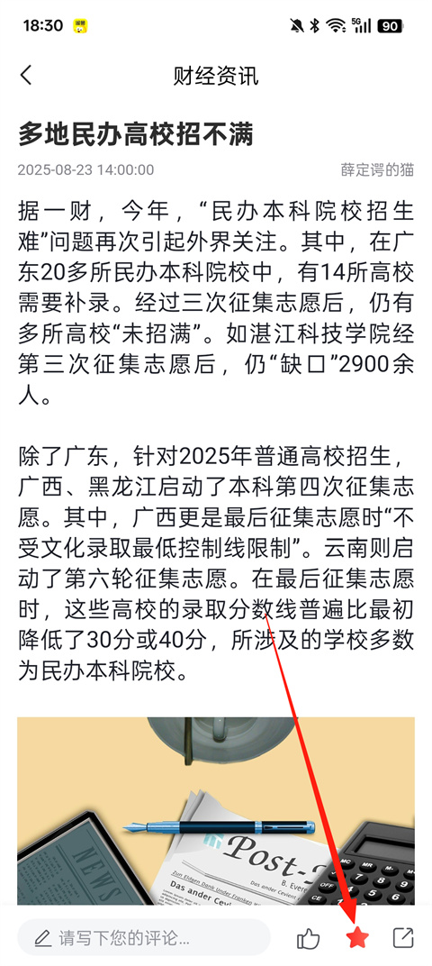 1、当用户想要收藏一篇文章时,点击右下角星星图标即可收藏
