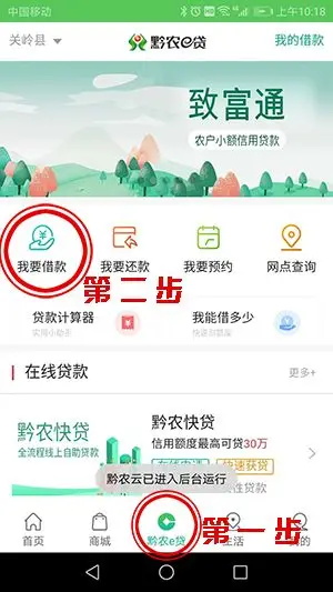 签约入口:登陆黔农云APP根据提示完成认证及设置支付密码后,通过黔农e贷“我要借款”进入贷款产品申请。