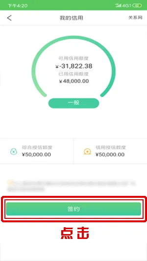 进入贷款产品详情后点击“立即申请” 或 通过“我”--“我的信用”点击“签约”按钮,前往签约页面。