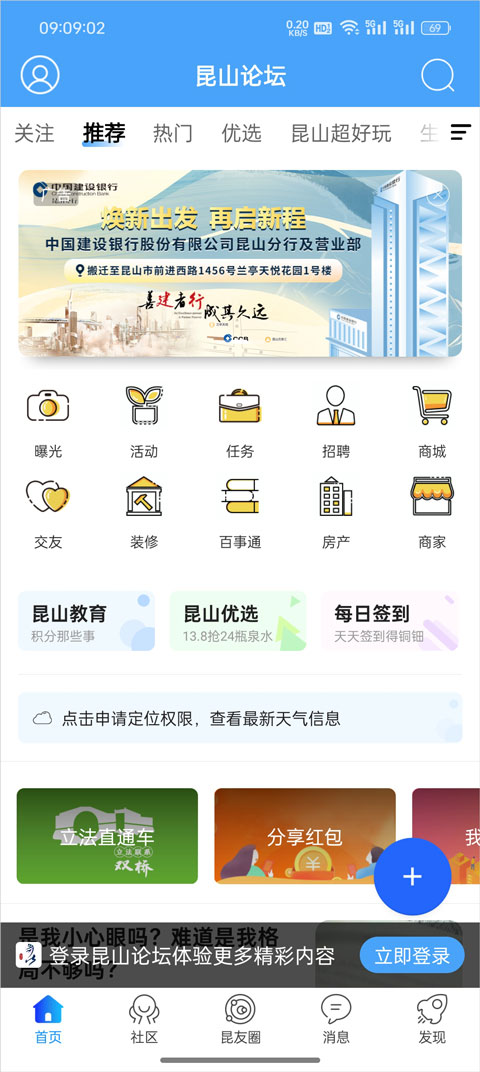 1、进入昆山论坛App后点击右下角的发现