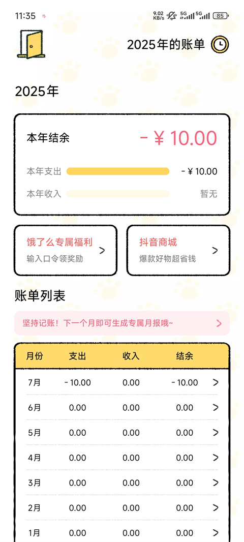 6、你在本子上记下的每一笔账,都有可能吸引来一只猫咪,猫咪可以帮助你解锁更加好看的记账主题和装饰道具