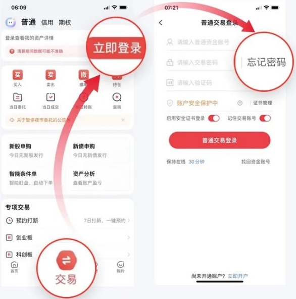 业务办理完毕会有短信通知您,办理成功就可以返回到交易页面,登录资金账户进行交易啦!