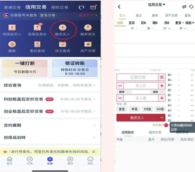 在做融资融券交易前您需将担保品提交到信用账户,担保品分为可充抵保证金证券和资金。您可以通过「担保品划转」将担保证券从普通账户划转证券至信用账户,或通过「银证转账」划转现金至信用账户。