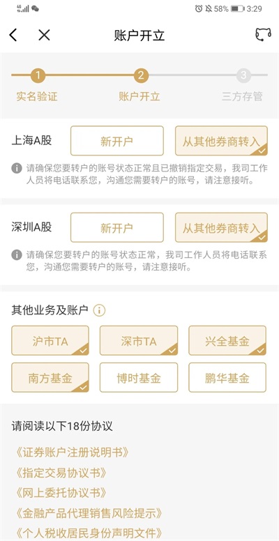 同新开户步骤,按提示选择股东转户即可