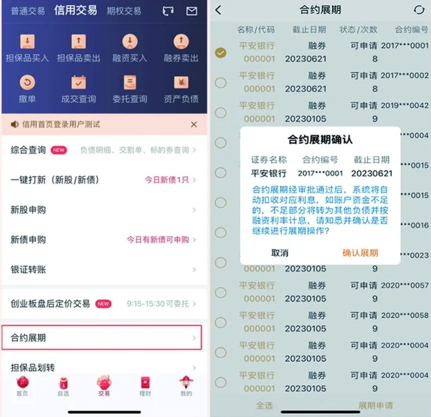 您的每一笔融资融券交易的最长期限不超过六个月,负债合约到期日前40个交易日内可以通过优理宝APP进行合约展期,如有展期需求您可在我司交易系统正常开放时间提交合约展期申请。(展期最新要求可查询兴证官网业务公告)