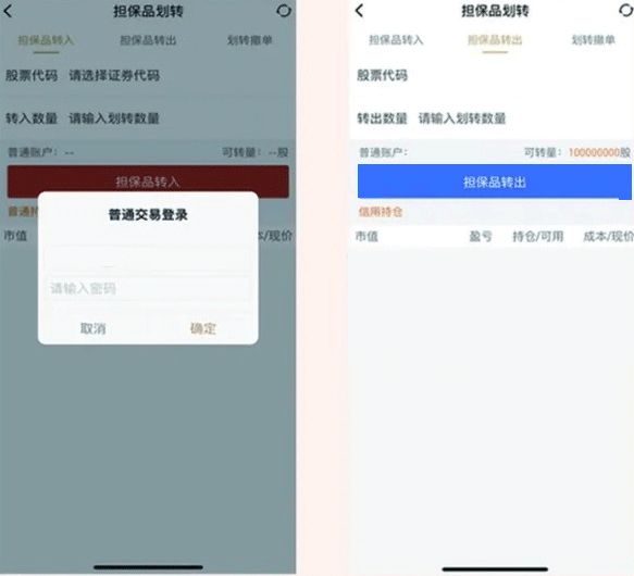 *划转担保证券时,需要同时登录普通账户。