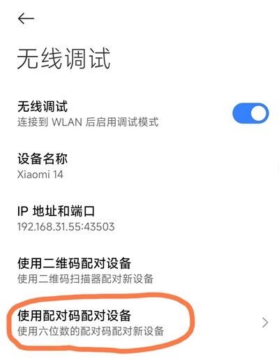2.通过无线调试启动:点击“输入配对码”后立刻提示失败