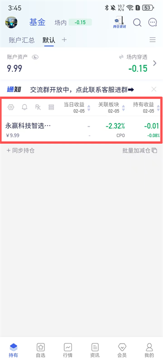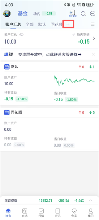 1、打开养基宝App在持有页点击上方的【+】按钮。