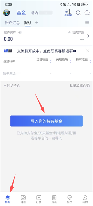 1、打开养基宝App,注册并登录后点击【持有】-【导入你的持有基金】。