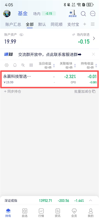 2、进入到基金详情页即可查看该基金的当日涨跌和其他状态。