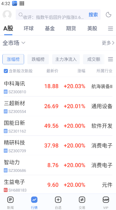 3、主力资金:实时查看沪深A股资金数据,跟踪主力动向。