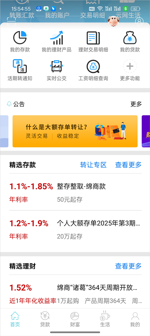 1、绵阳市商业银行官方客户端包括我的,银行,生活服务,理财等相关模块。