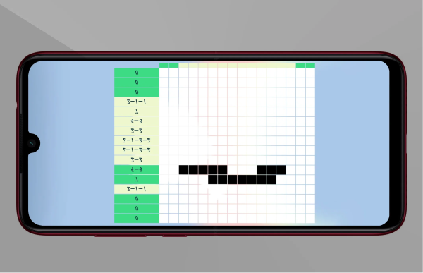 到了这个界面,是不是有点懵呢,只要最左边和最下面全部变成绿色即可完成图案。图中左边的数字说明该行有几个黑块,通过点击该行的方块,直到该行变成绿色即可。
