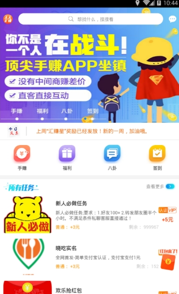 天天汇赚App是一款专为广大喜爱玩赚钱的用户打造的手赚神器,这款软件有着最为丰富的任务,每天还定时的刷新高收益任务,多赚多得,没有任何的手续费,让您做多少任务,就拿多少奖励,给您带来最佳的手赚体验!