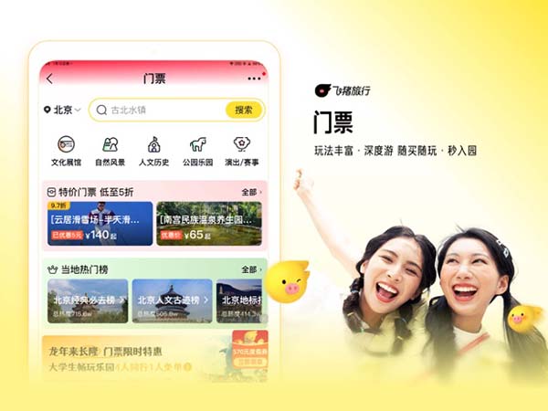 飞猪旅行ipad版是专为广大iPad用户使用的客户端版本,软件能够兼容iPhone、iPad、iPod touch等设备。软件是阿里巴巴旗下的综合旅行服务软件,能够为广大用户提供便捷优质的出行服务。这里支持旅行多样化的需求,无论是酒店、机票、火车票、汽车票、门票还是旅游行程路线规划,这里都能满足你的一切需求。出境游需要的电话卡,境外WiFi、签证等等服务业都为广大游客准备好了。出门旅行,用飞猪旅行iPad版就可以啦。
