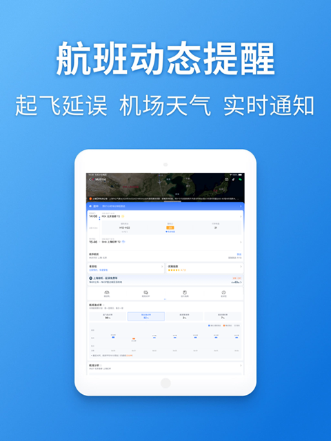 航班管家ipad版主要功能集中在查询航班时刻、机票折扣和数量、机票,以及航班动态实时查询、机场实时天气查询、登机口指引情况查询等,绝对是您出差旅行的必备软件之一。
