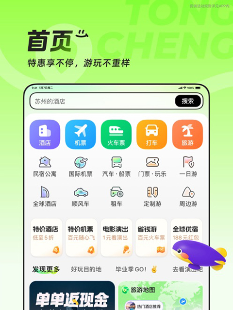 同程旅行iPad版是同程官方专为iPad用户推出的版本,软件功能强大,集成景点门票、机票、酒店、火车票、汽车票、周末游、出境跟团、出境自由行等为一体的一站式旅游服务应用。目前有超过8000家旅游景点与同城旅游合作,可轻松一键获得门票购买以及其他用户的景点点评,为你的旅行做一个更好规划。软件支持在线预订,只需要短信即可轻松付款取票,非常便捷。在同程旅行iPad版,你还能享受到意想不到的优惠,超多热门景点一折预订,拼手速、拼人品的时候到了,赶紧下载使用吧。
