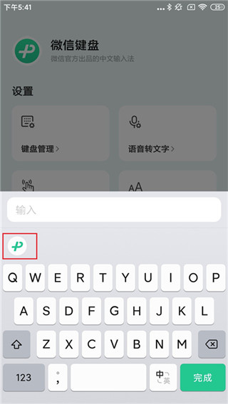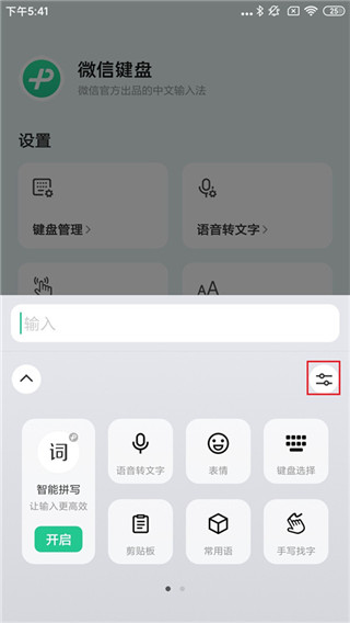 1、首先进入微信键盘app,点击下方按钮;