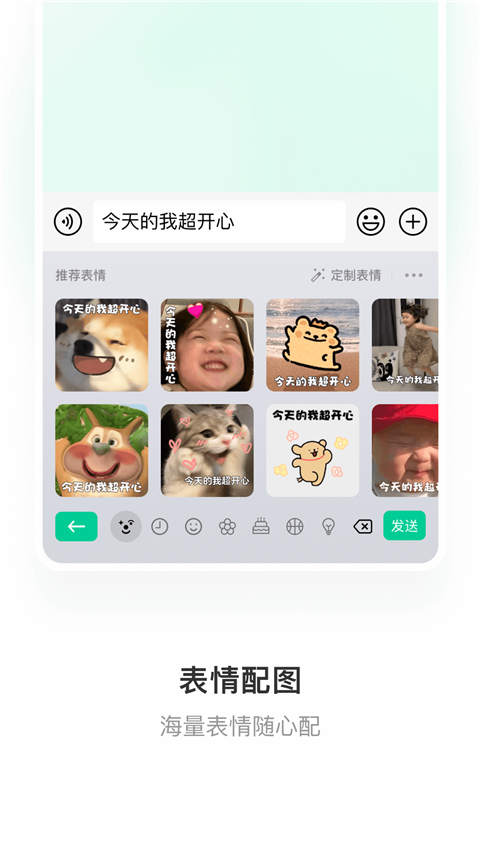 2、配色以白色与绿色为主,与微信配色保持一致,用户使用微信进行输入时体验更加沉浸。