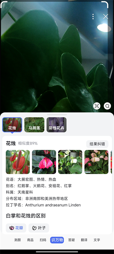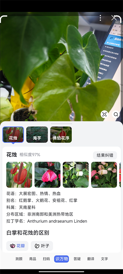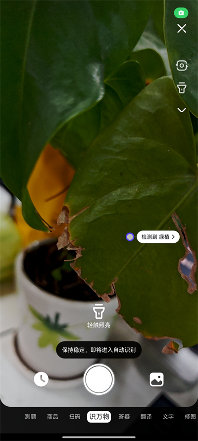 2、进入相机页面,将相机对准要识别的东西,即可出现相关名称;