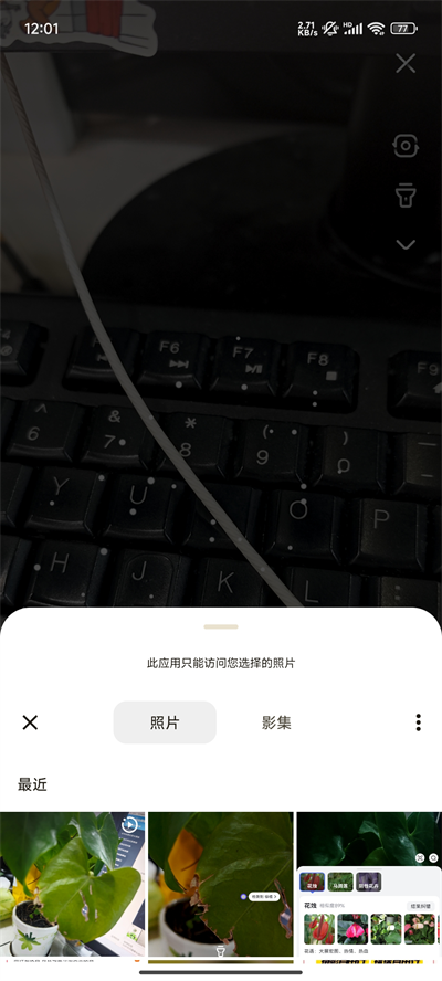 3、可以在相机页面中点击下方的相册按钮;