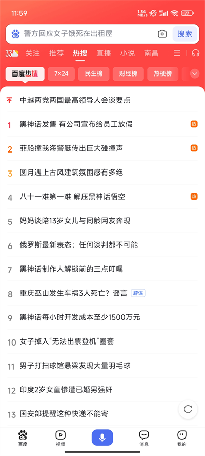 百度搜索App是一款拥有强大搜索引擎的手机浏览器,依托百度家族深耕多年的独有资源及强大技术优势,极大地改变传统人搜索资讯的模式,每日实时推荐个性化海量新闻热点头条,智能算法一触即达,让您的生活简单高效。现阶段,百度搜索App支持语音搜索,全能搜索更智能,使用方便。软件不仅支持百度的极速搜索,同时还集成了智能小程序、短视频、热门资讯、正版小说等常用功能,能够满足用户娱乐、出行、购物、生活服务各方面需求。